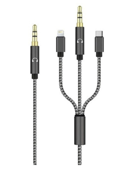 Un cable auxiliar jack 3 en 1 es un cable que permite conectar dispositivos con jack de 3.5 mm a otros dispositivos, como aquellos con entrada tipo C o Lightning.