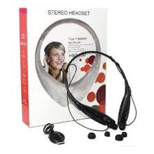 Auriculares intrauditivos e inalámbricos tipo deporte con banda en el cuello.