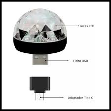 LUZ BOLICHERA AUDIORITMICA PARA CELULAR USB CON ADAPTADOR USB Tipo C